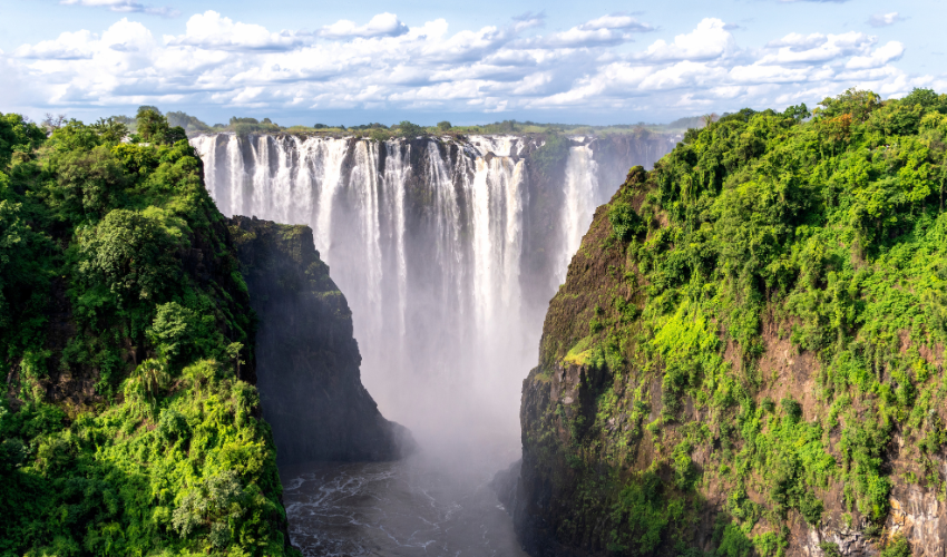 Het wereldwonder van de Victoria Watervallen zal zeker een diepe indruk op je maken. Het water van de Zambezirivier dondert met enorme kracht 100 meter naar beneden over een lengte van bijna 1800 meter. De waternevel heeft in de nabijheid een dichte vegetatie doen ontstaan, waardoor je zeer de schuwe bosbok en een groot aantal apen aantreft. Voor de waaghalzen onder ons is er de mogelijkheid om met een rubberboot van de Zambezirivier te 'White Water Raften'. Verder kan je met een vliegtuigje vlak over en langs de indrukwekkende watervallen vliegen.