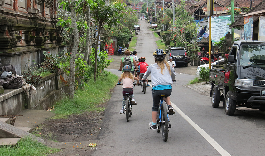 Het binnenland van Bali is fantastisch en hoe leuk is het om al dat moois op een bijzondere wijze te ontdekken: per fiets! Naar mijn mening dé manier om de toeristische straten van Ubud achter je te laten en het dagelijkse leven van de Balinees van dichterbij te ervaren. Ik had de fietstocht een paar jaar ervoor gedaan zonder kinderen en wilde hem absoluut ook doen met mijn 2 dochters, omdat ik het indertijd zo een mooie ervaring vond. En dat was het nog steeds!