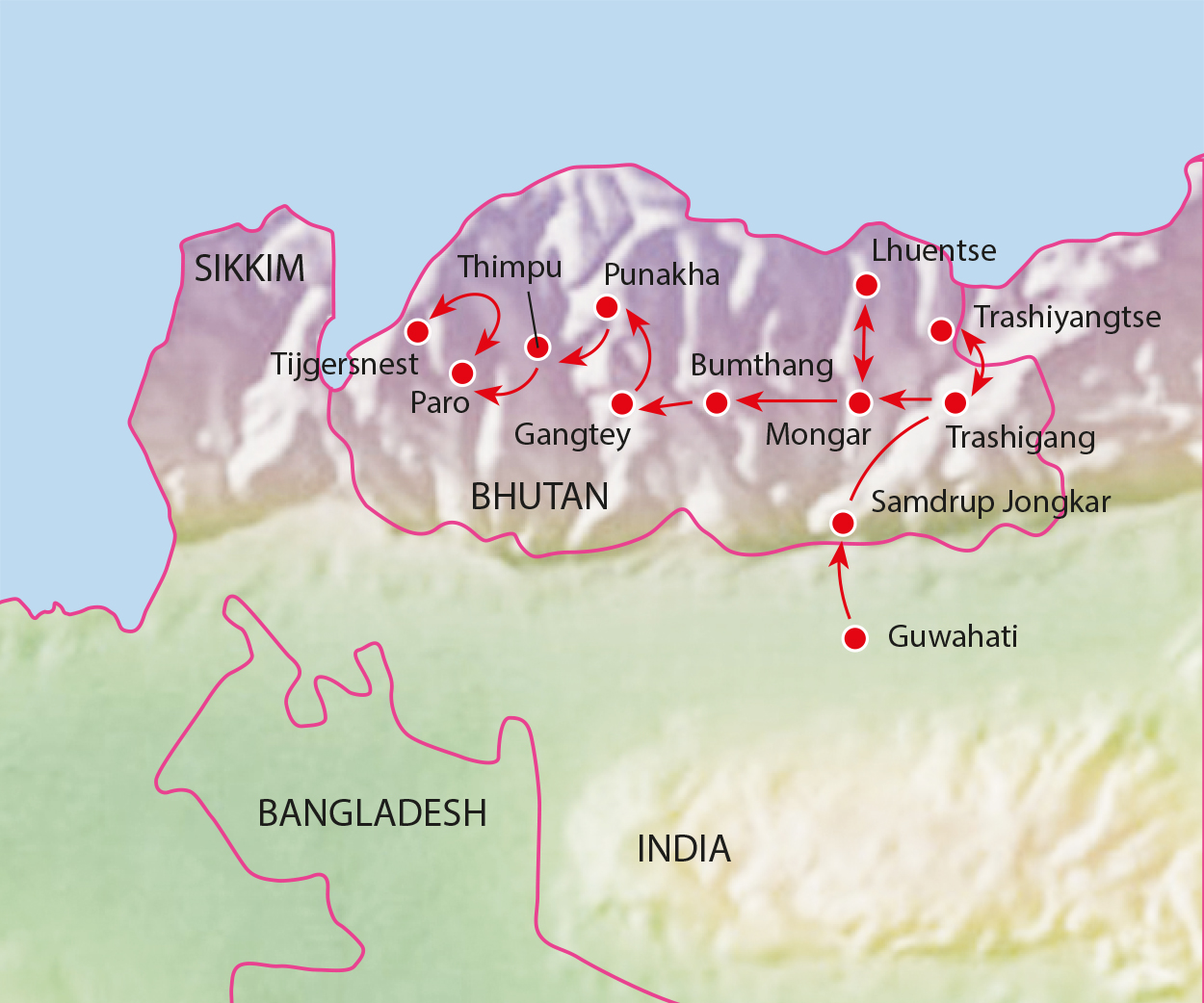 In het ‘Land van de Donderende Draak’ bestaan geen lelijke vergezichten. Je reist tijdens deze Bhutan rondreis door een bergachtig landschap, dat wordt opgeluisterd door monniken in bordeauxrode pijen, gebedsvlaggetjes en boeddhistische monumenten. Je verblijft 16 nachten in het mystieke Bhutan, een uniek aanbod in Nederland en België! En… in het koninkrijk waar het geluk van de bevolking belangrijker is dan het bruto nationaal inkomen is een vriendelijke glimlach nooit ver weg.