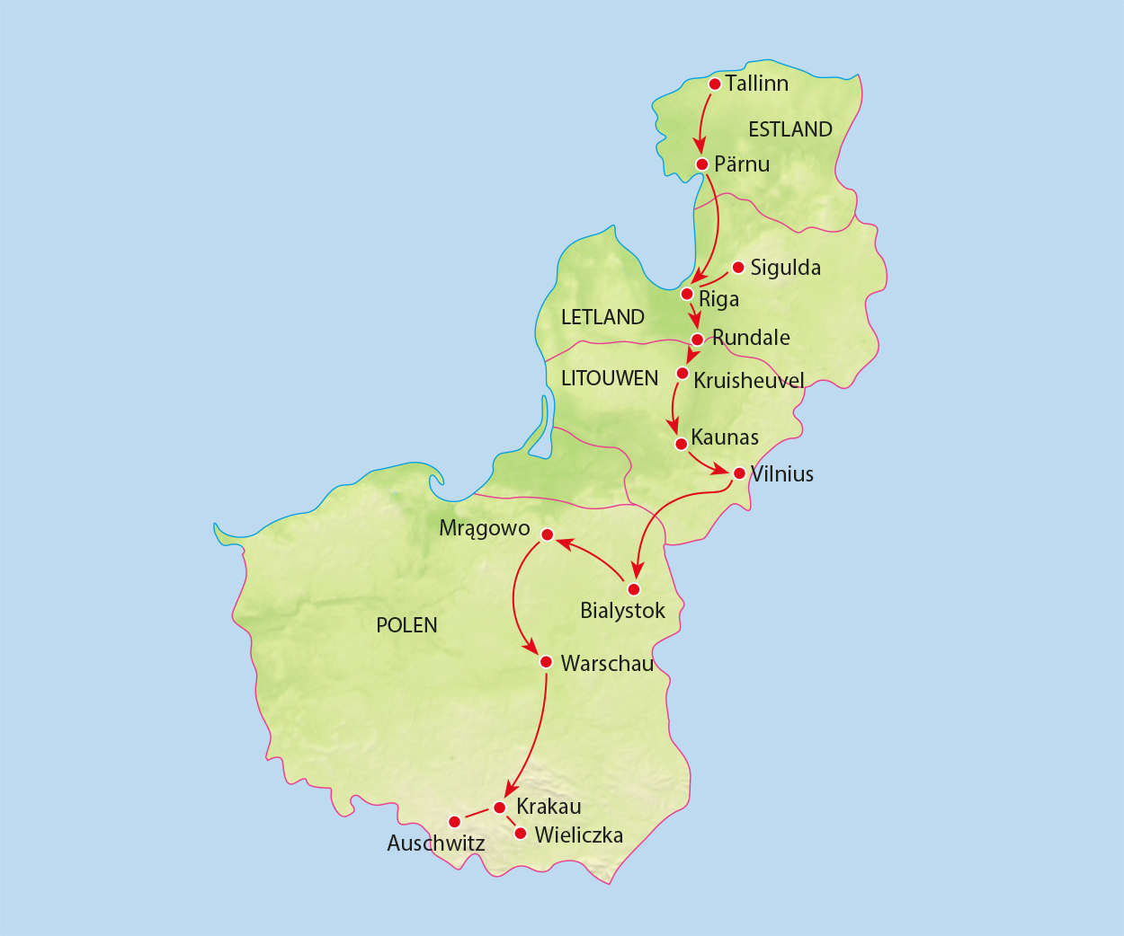 Denk je aan de Baltische Staten en Polen, dan denk je aan… Ja, waaraan eigenlijk? Veel reizigers weten dat deze landen in Oost-Europa liggen. Maar verder? Stap met Koning Aap in de wereld van middeleeuwse straatjes, barokke pleinen en uitgestrekte meren tijdens deze avontuurlijke groepsreis door Estland, Letland, Litouwen en Polen! Elke dag brengt je dichter bij de rijke geschiedenis, indrukwekkende natuur en unieke cultuur van deze vier landen. Van het kleurrijke Tallinn, via het bruisende Riga en sfeervolle Vilnius, tot de historische charme van Warschau. Ontdek (ook onderweg) verborgen parels, proef lokale lekkernijen, ontmoet enthousiaste locals en beleef het onverwachte.