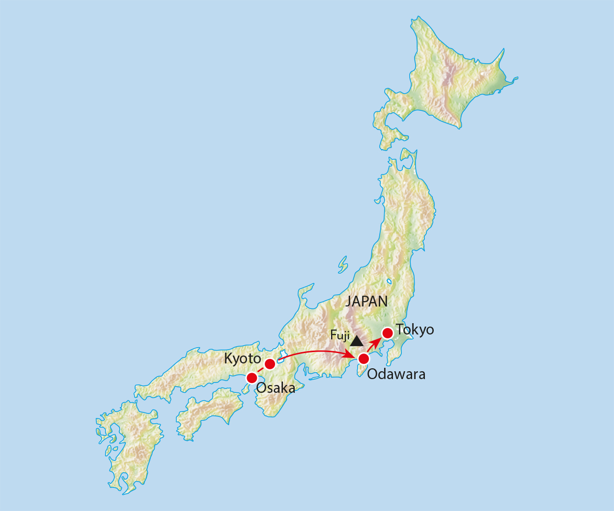 Op deze rondreis door Japan ligt het reistempo lager in vergelijking met onze reguliere reizen. Je verblijft op het eiland Honshu in slechts vier plaatsen (minder vaak je koffer/reistas inpakken). Naast de bruisende havenstad Osaka, hét culturele hart van Japan Kyoto en de hoofdstad Tokyo bezoek je het Japanse platteland in de omgeving van Mount Fuji. Je reist per eigen bus, op één traject gebruik je de comfortabele Shinkansen (de Japanse hogesnelheidstrein).