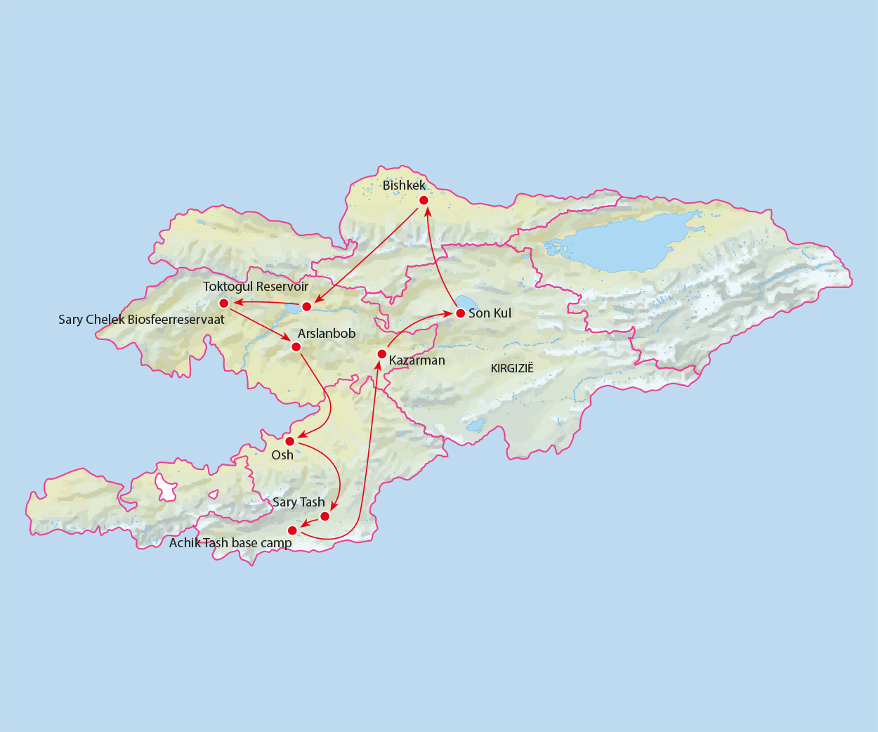 Zin in iets anders? Reizen door een ongerepte bestemming als Kirgizië betekent dat je regelmatig onderweg bent, maar wel door de mooiste landschappen. Wandelen doe je in berggebieden waar de schone lucht en bergkruiden je ademhaling strelen. Vriendelijke nomaden met hun dieren en het kristalheldere water van een verborgen meer geven het avontuur nog wat extra kleur. Slapen doe je regelmatig bij mensen thuis of in traditionele tenten. Liefhebbers van geschiedenis kunnen in de hoofdstad Bishkek hun hart ophalen. Overblijfselen van de Sovjet-Unie zijn er eenvoudig te ontdekken.